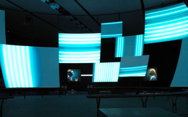 A SYNCHRONIZED 24-SCREEN AUDIOVISUAL INSTALLATION. :